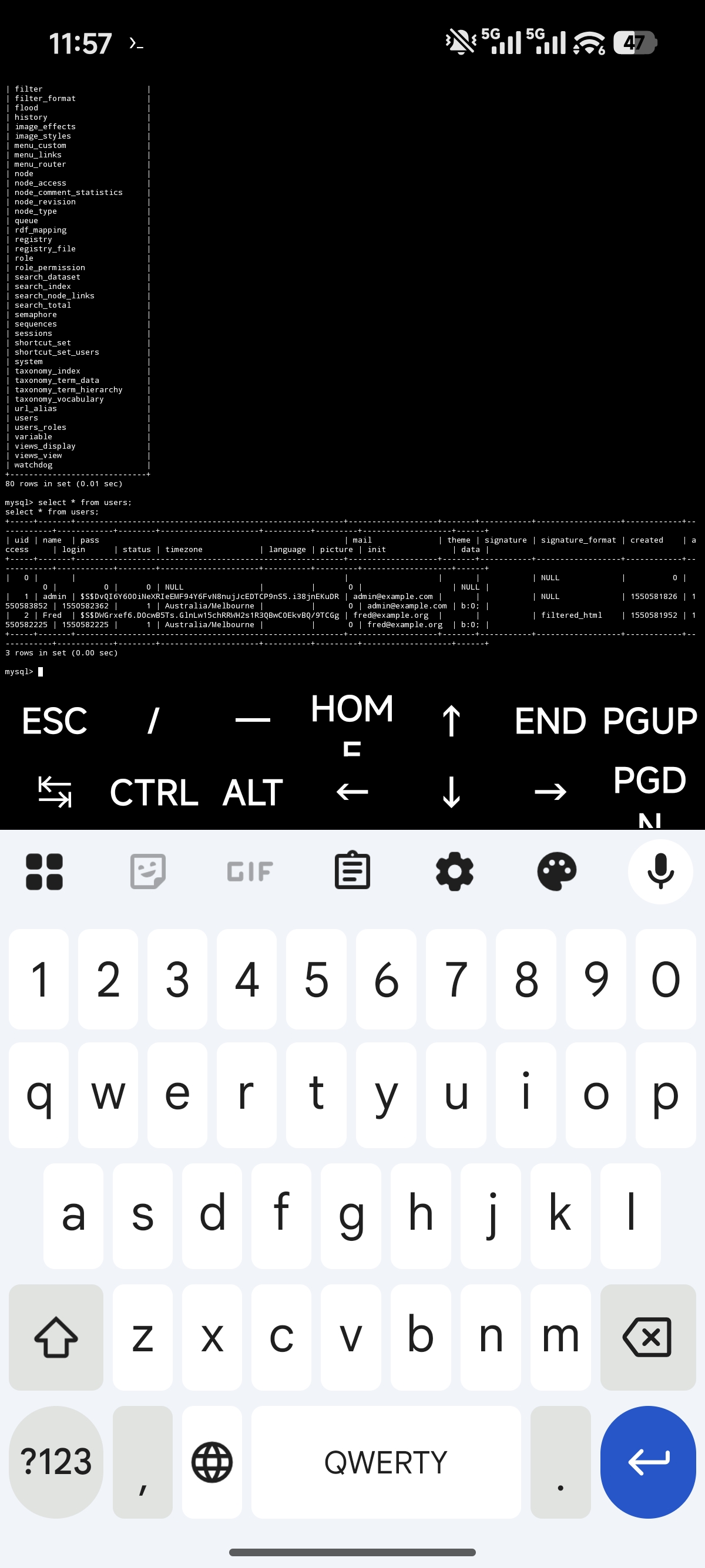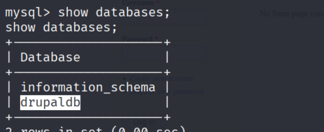 选择drupaldb:use drupaldb;
