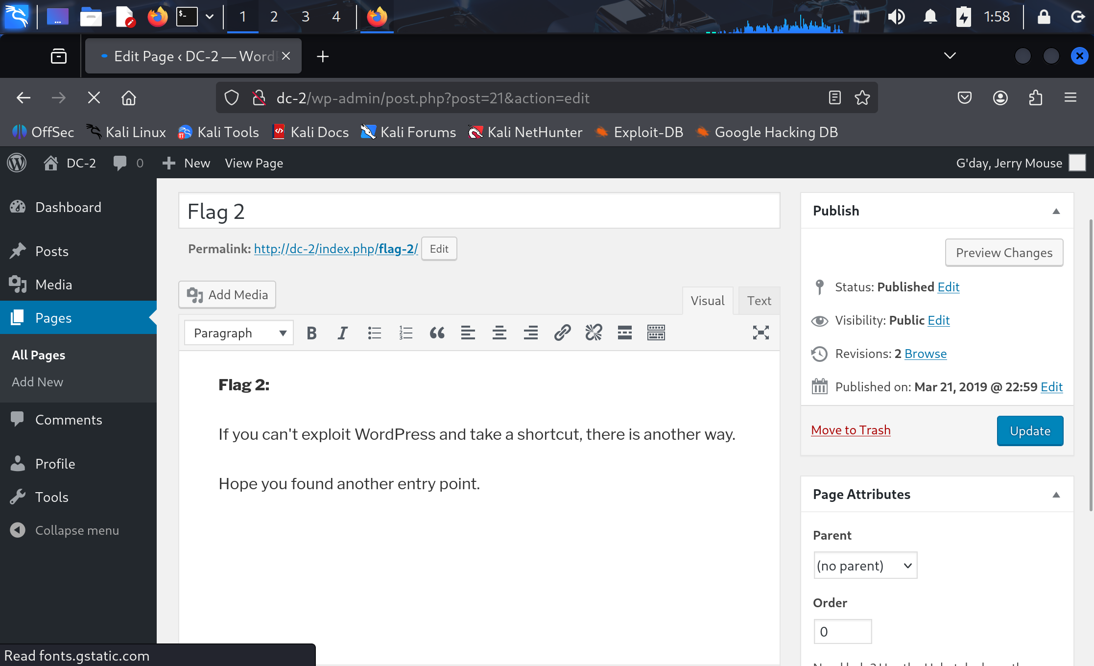 当然如果你对wordpress比较熟悉可以直接访问:http://dc-2/wp-admin/