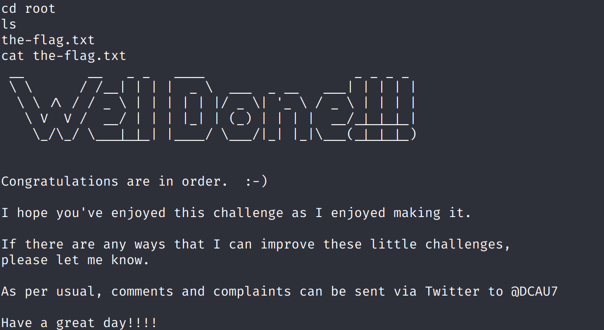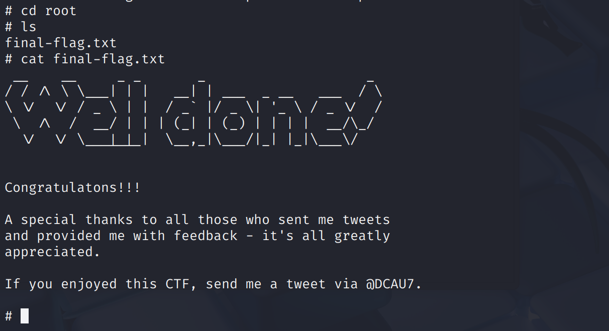 最后进入root目录,ls发现存在最终flag,cat读取拿下。