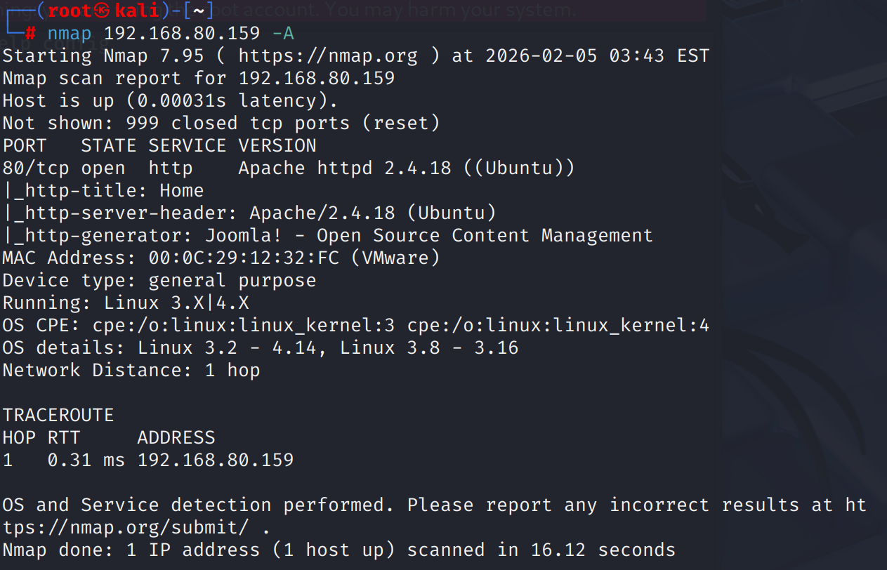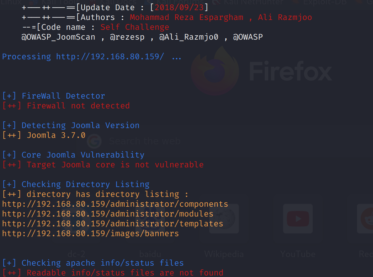 nmap强扫描发现开放80端口,cms框架为Joomla