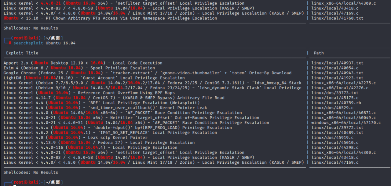 查找相关漏洞:searchsploit Ubuntu 16.04 4.4.0-21