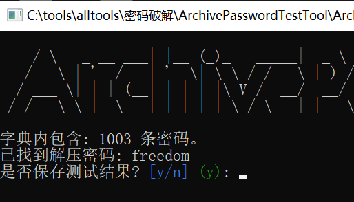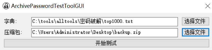 使用ArchivePasswordTestTool.exe进行破解,字典选top1000.txt (吐槽:早知道就不这样大废周折了)