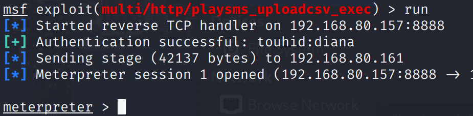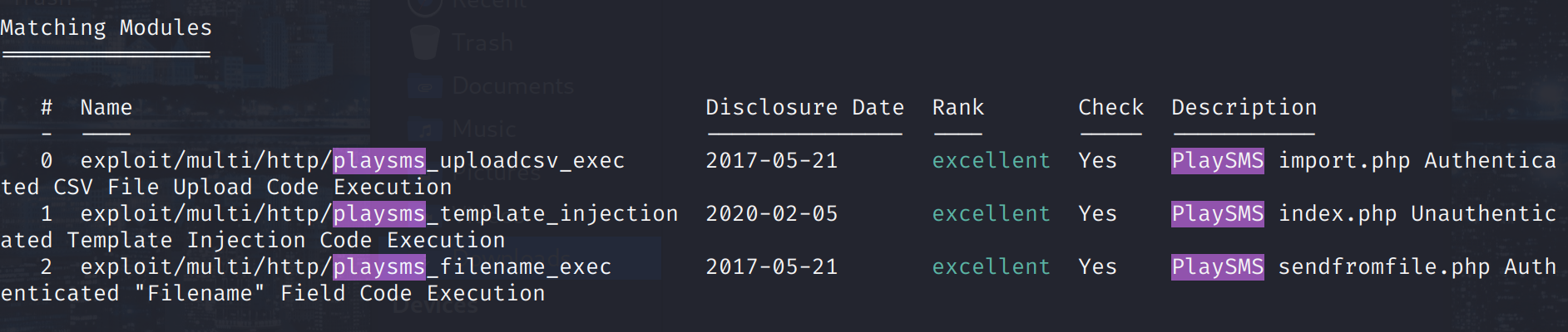 看到使用的cms是playSMS,为节约时间,我们尝试使用metaspolit,搜索漏洞