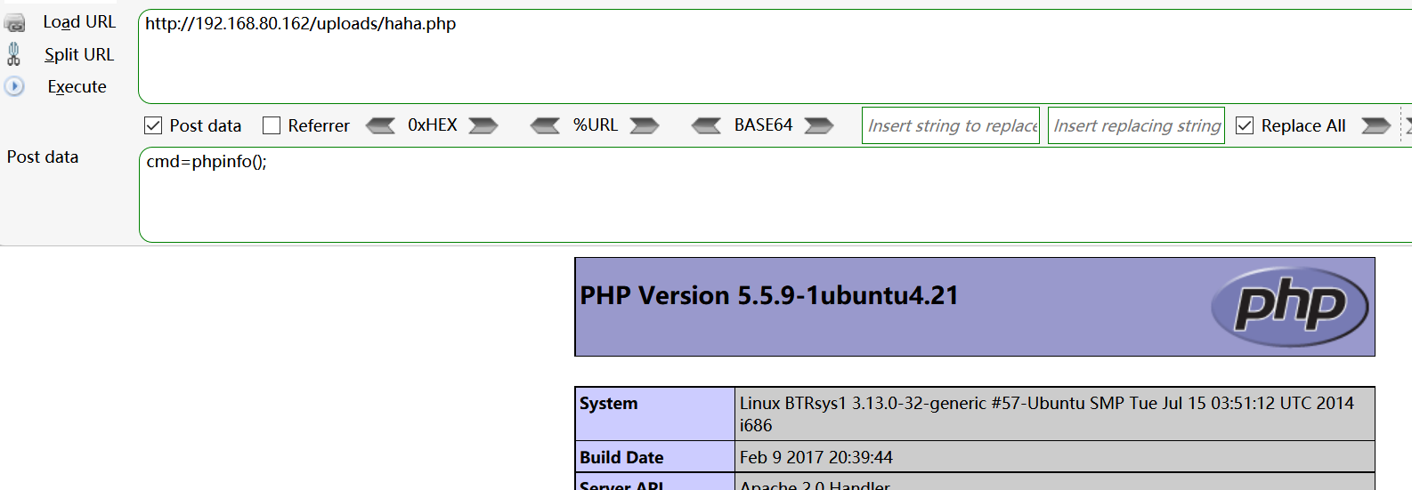查看http://192.168.80.162/uploads/已经成功上传并且可以成功执行语句