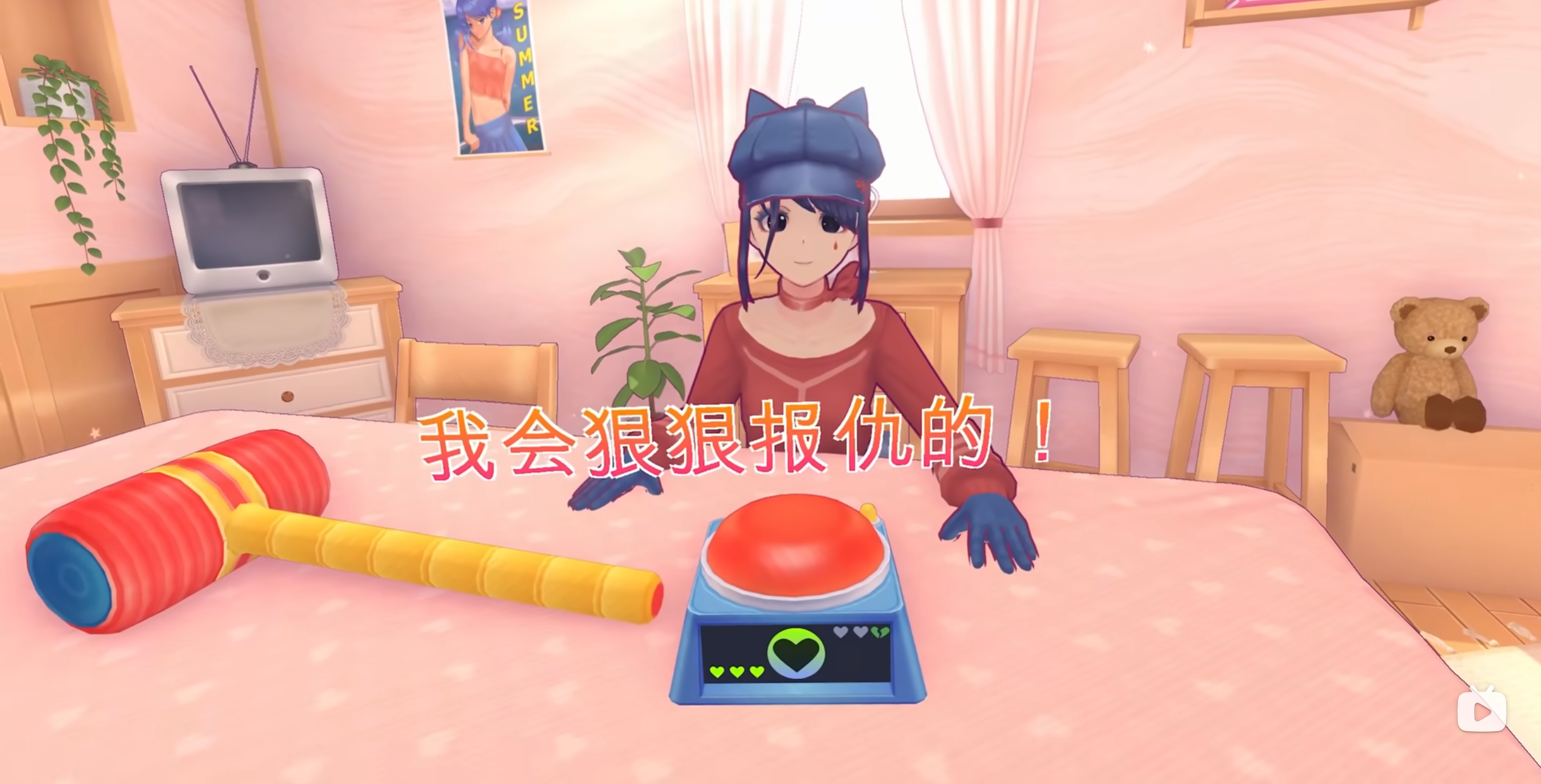 当你反复点击米塔的脸时她会像赶苍蝇一样摆动手掌同时看向屏幕外的你,例如下面这张图片。