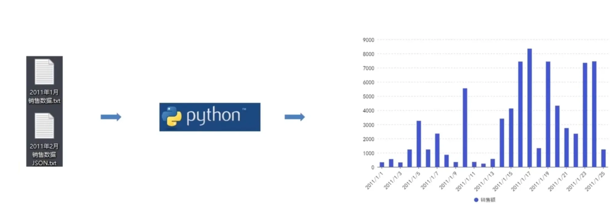 某公司有两份数据文件,现需要对其进行分析处理,计算 每日的销售额 并以柱状图表的形式进行展示。